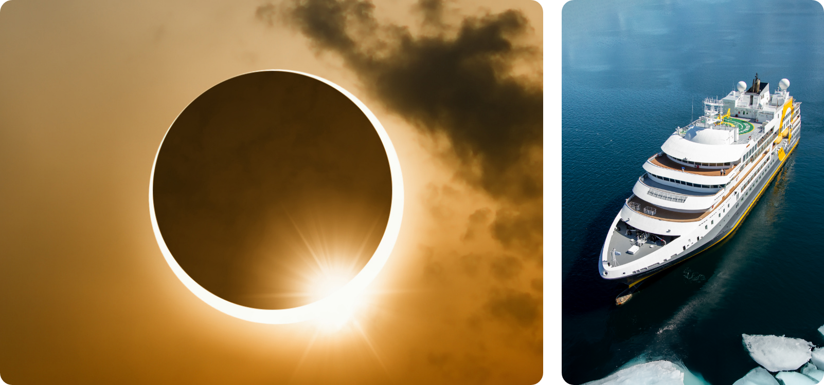 De asemenea, ne îmbarcăm în noi călătorii între Islanda și Groenlanda. Prima este o călătorie unică în viață în care veți experimenta cea mai lungă durată a unei eclipse solare. Alta vă poartă într-o aventură epică pe munți, prin fiorduri și pe lângă ghețari.